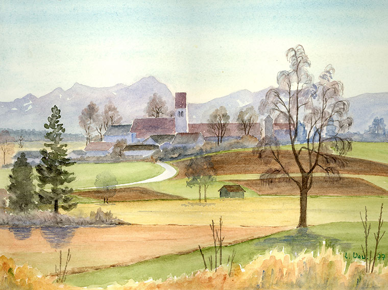 "Ergertshausen bei Gegenlicht" - Aquarell 1977