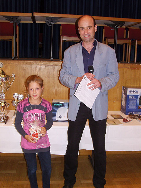 Ehrung der jüngsten Teilnehmerin Michaela Manco durch Béla Arnoczky.