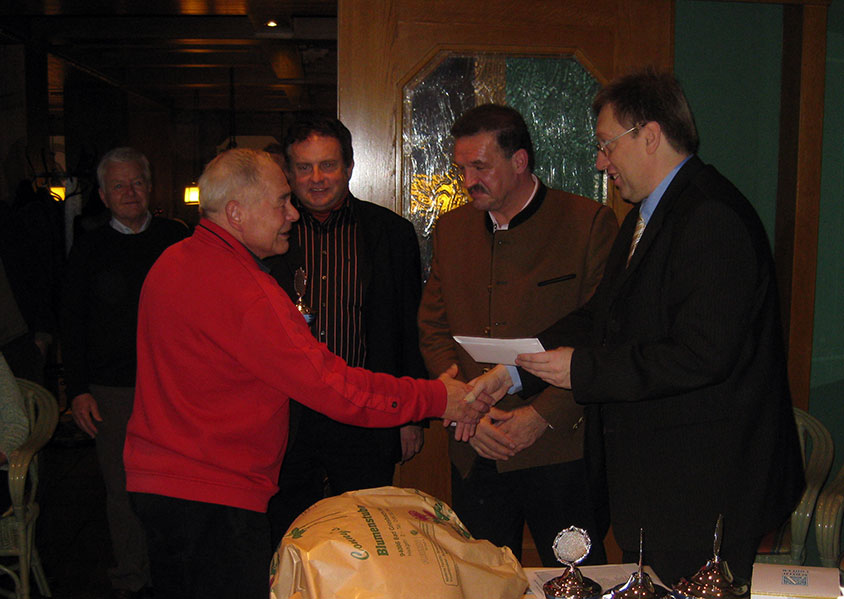 gestartet und erziehlte den zehnten Platz der Endauswertung. Organisator Dipl.-Kfm. Josef König gratuliert dem erfolgreichen Neuperlacher Spieler