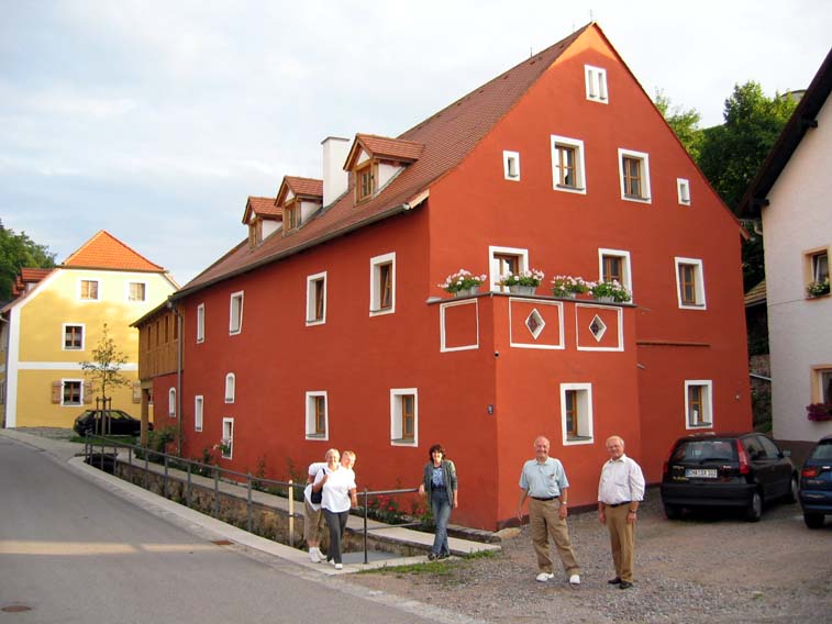 Das liebevoll restaurierte Haus der Familie Pestenhofer, dahinter das ehemalige Badehaus des Klosters