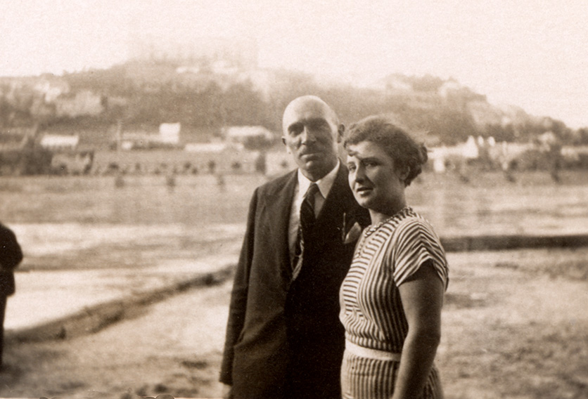 Die Eltern von Ludwig Karl Wawrinsky 1934 in Preßburg. Im Hintergrund die Burg.